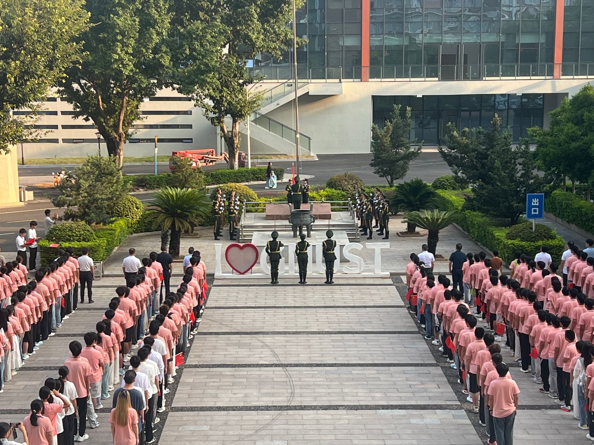 秋日晨光,微风和畅。学校国旗护卫队迈着铿锵有力的步伐,护卫五星红旗行进至旗杆下。在全体师生庄严的注视中,激昂的《义勇军进行曲》奏响,鲜艳的五星红旗冉冉升起、迎风飘扬,点燃了青年学子心中炽热的爱国之情与报国之志。