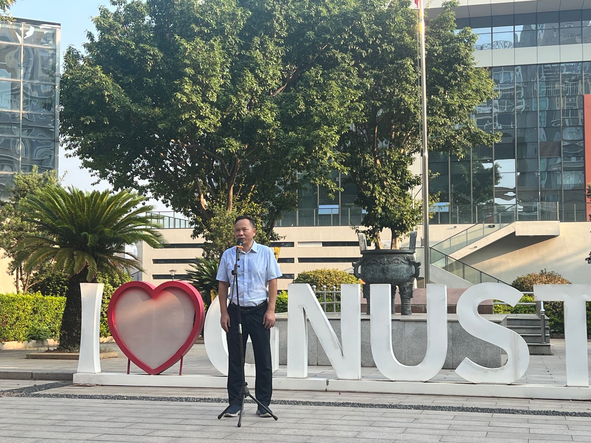 学校党委委员、纪委书记陈文新作国旗下讲话。他指出,在中华人民共和国成立76周年之际举行升旗仪式,充分展现了师生深厚的爱党爱国情怀和报效祖国的坚定信念。76年波澜壮阔,中国共产党领导人民实现从“站起来”“富起来”到“强起来”的伟大历程。当代青年要坚定听党话、跟党走,既要胸怀理想、敢想敢为,也要脚踏实地、善作善成,将个人奋斗融入民族复兴的伟大征程,为在本世纪中叶全面建成社会主义现代化强国贡献青春力量。