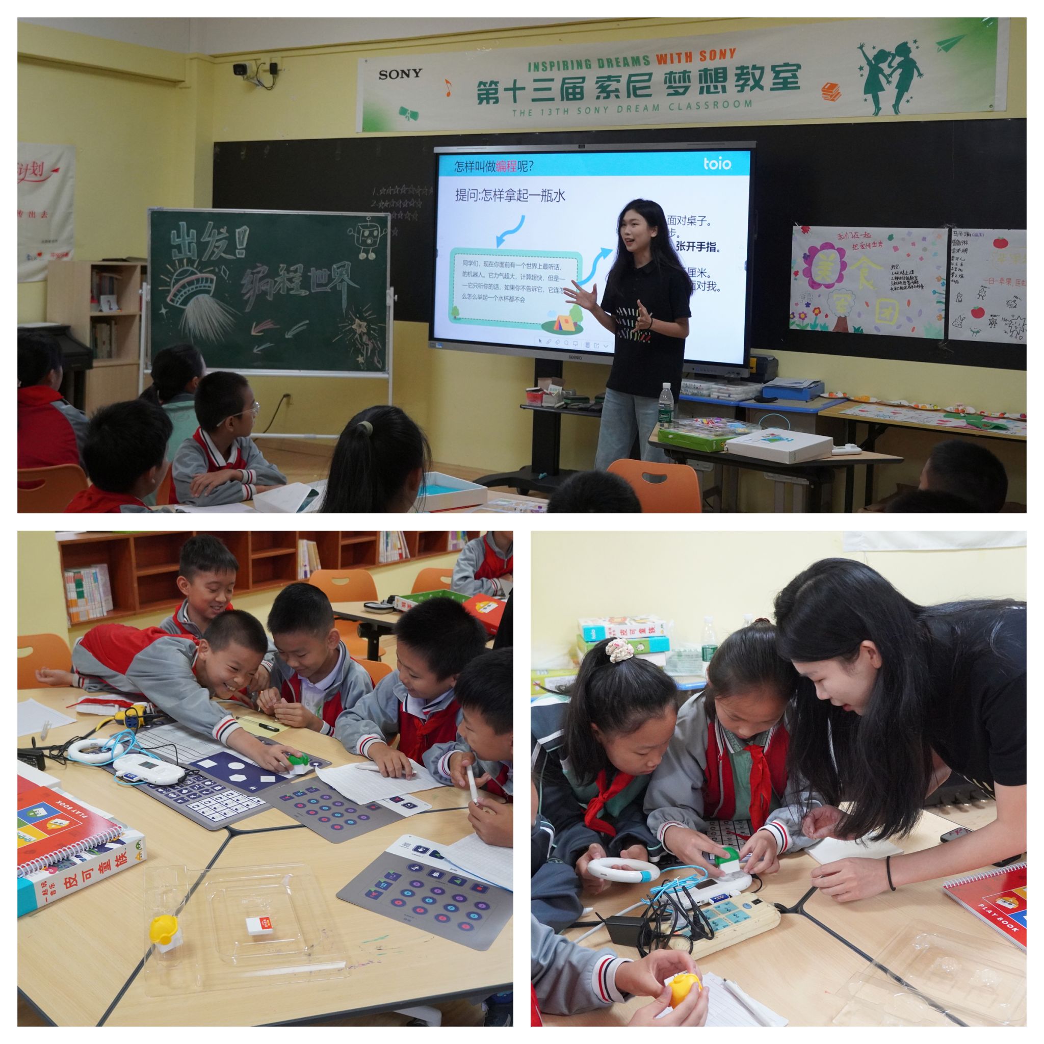 “索尼梦想教室”的核心,在于将科技的魅力带给孩子们。活动中,我校青年志愿者团队充分发挥专业优势,将索尼公司提供的先进设备与精心设计的课程相结合,打造了一系列别开生面的互动课堂。从亲手操控机器人完成指令,到用代码编写第一个动画;从学习构图技巧拍下第一张照片,到在音乐创作软件中谱出最初的旋律……志愿者们化身为“科技领航员”,引导孩子们在体验中学习,在创造中成长。这些原本遥不可及的科技概念,在趣味盎然的实践中变得触手可及,一颗颗好奇与创新的种子,在孩子们心中悄然生根发芽。