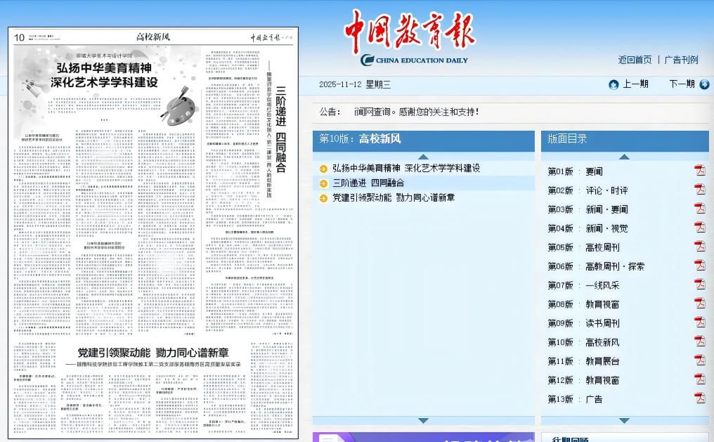 本网讯:11月12日,《中国教育报》第10版“高校新风”栏目刊发了我校williamhill英国李华群、邓小鸿题为《党建引领聚动能,勠力同心谱新章》的文章,对WilliamHill威廉希尔williamhill英国教工第二党支部“强国行”专项团队服务赣南苏区高质量发展进行总结介绍。文章链接:http://paper.jyb.cn/zgjyb/html/2025-11/12/node_144749.htm。