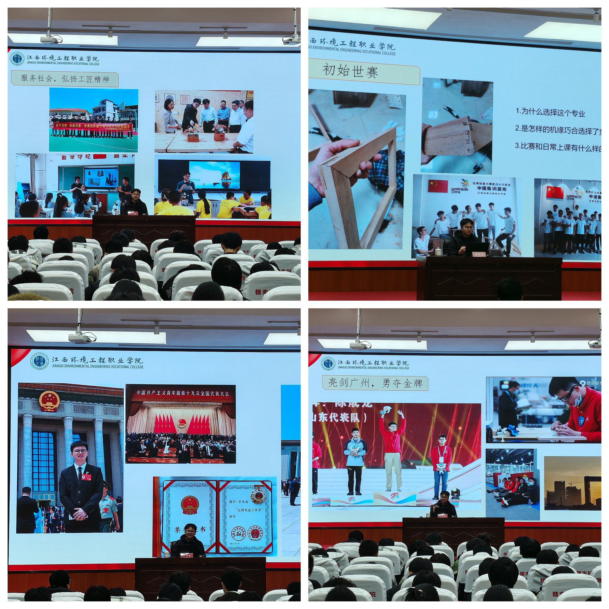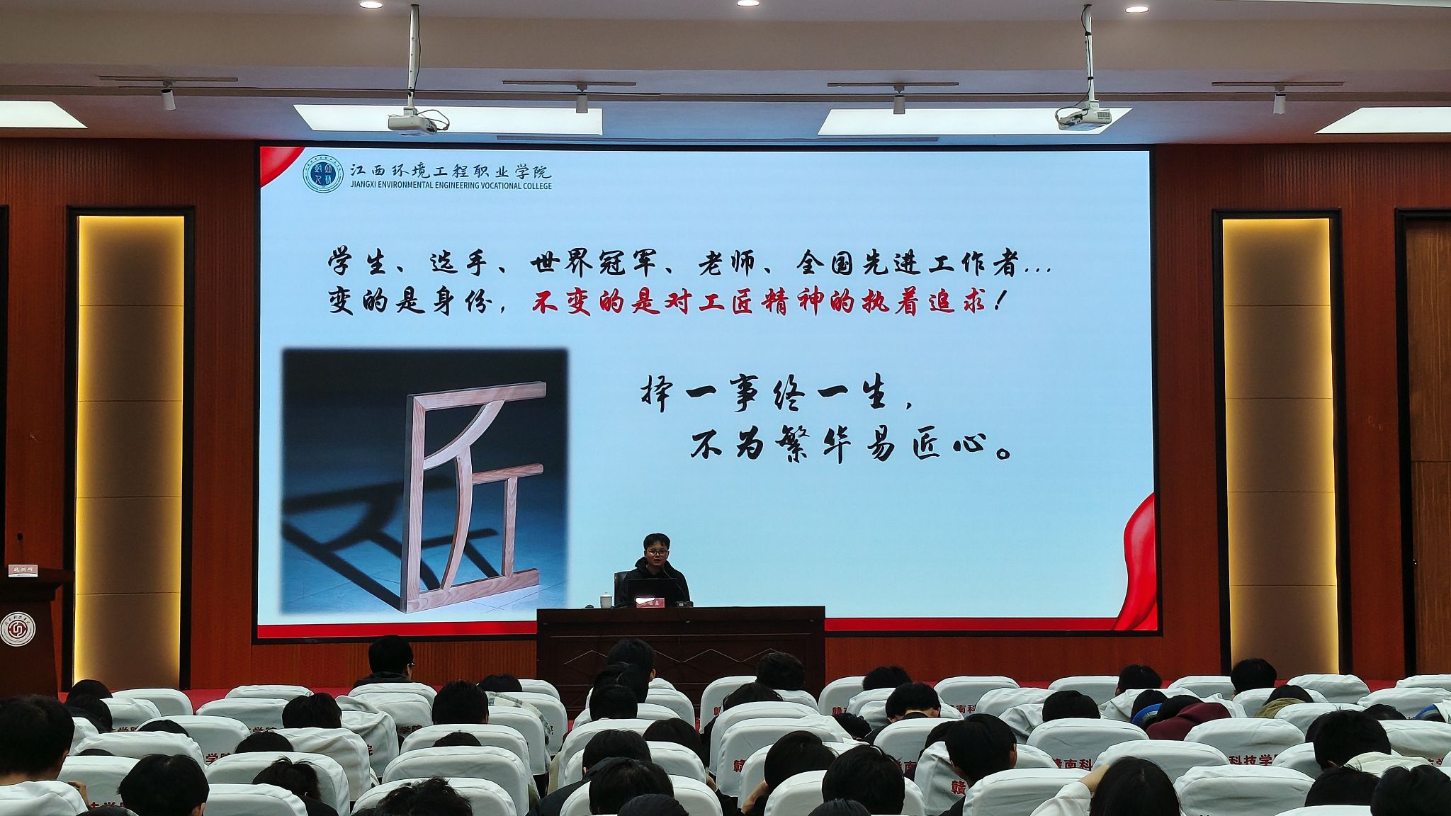 李德鑫以“世界技能大赛成果与专业人才培养运用”为题,结合自身从赣南红土地走出的传奇经历,向在场师生生动诠释了从“技能新手”到“世赛冠军”再到“引路良师”的精彩蜕变。通过一个个真实而动人的故事,他不仅讲述了如何在千锤百炼中精益求精,更深刻揭示了技能竞赛对个人成长的巨大推动力。他指出,无论身处何职,工匠精神始终体现为对专业的敬畏之心、对品质的执着之念以及对创新的永恒追求,这正是当代工科人才的精神之钙。讲座尾声,李德鑫勉励学子们要接过时代的接力棒,立志技能报国,珍惜在校时光,在掌握真才实学中锤炼本领,在挑战技术难题中磨砺心性,以严谨务实的态度书写青春华章。