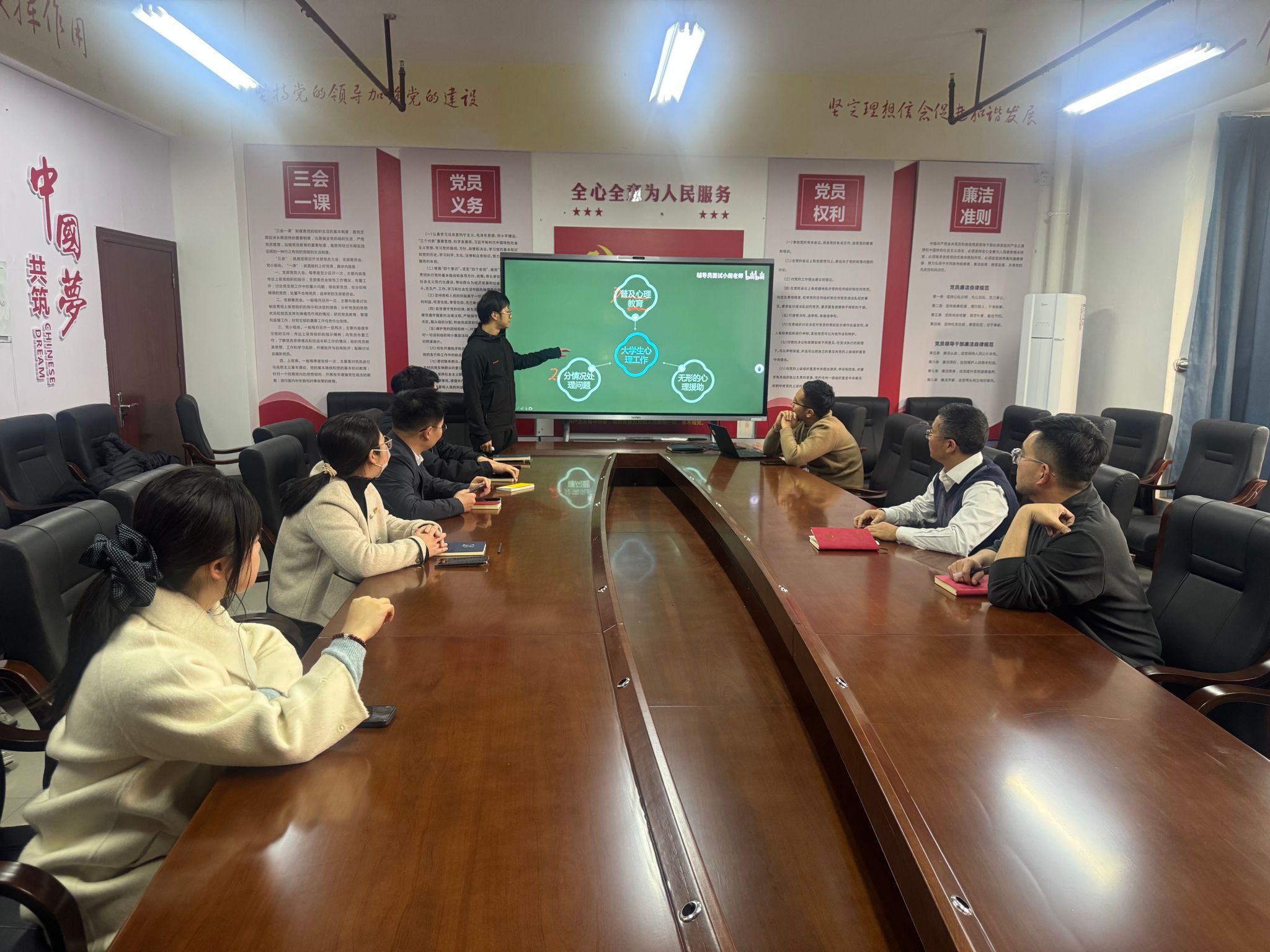 在发言讨论环节,辅导员们结合视频内容与工作实际,围绕“如何识别沉默型学生的心理困扰”“如何与家长有效沟通学生心理问题”等痛点展开深入探讨。刘天扬老师提出:“部分学生因羞耻感隐瞒情绪,需通过宿舍走访、朋辈反馈等间接方式获取信息。”万乐帆老师则分享了“用‘共情式提问’代替说教”的沟通经验,引发广泛共鸣。学院党委委员、学工办主任魏炳辉在总结中指出:“心理育人需‘因人而异、因事制宜’,既要掌握科学方法,更要保持敏锐洞察,将关爱融入每一个细节。”