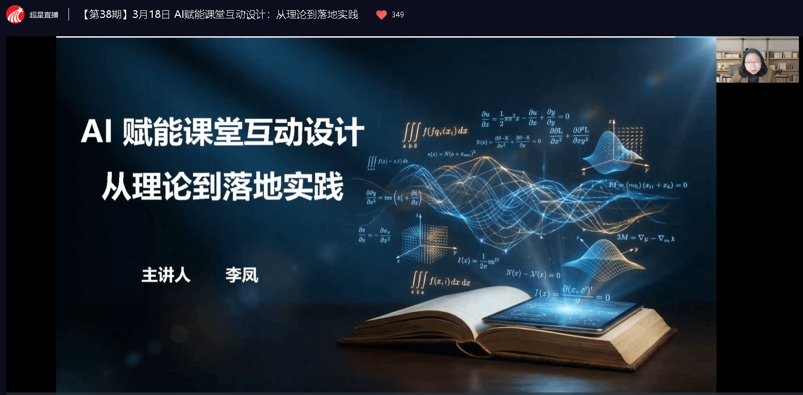 本网讯: 3月18日下午,由超星教师发展中心主办的“师享汇”系列线上公益讲座如期开播。我校williamhill英国李凤副教授受邀作题为《AI 赋能课堂互动设计:从理论到落地实践》的专题直播分享。本次讲座吸引了来自全国近5000名高校教师云端观摩,为广大高校教师带来了一场理论与实践并重的学术盛宴,充分展示了我校教师在教育数字化转型背景下的前瞻性探索与教学风采,极大提升了WilliamHill威廉希尔在全国高校教研领域的知名度与影响力。