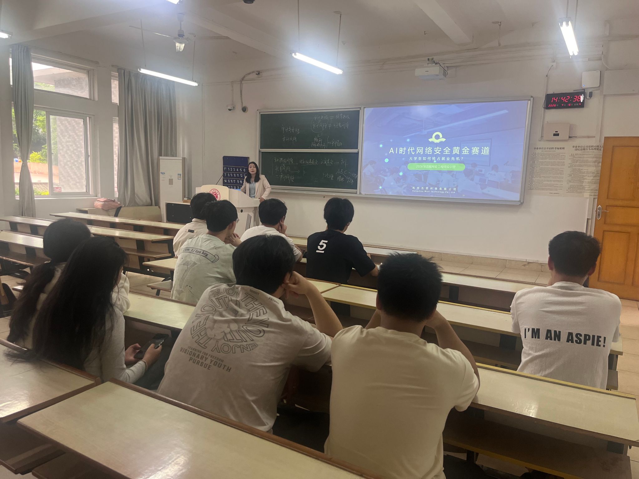 本网讯:为精准把握AI时代网络安全行业发展脉搏,助力学生抢占就业先机,4月16日,williamhill英国在崇善楼Z118成功举办第六十七期“就在赣科”就业育人大讲坛。本次讲坛以“AI时代网络安全黄金赛道,大学生如何抢占就业先机”为主题,特邀杭州五润科技认证部总监杨芳颖担任主讲嘉宾。