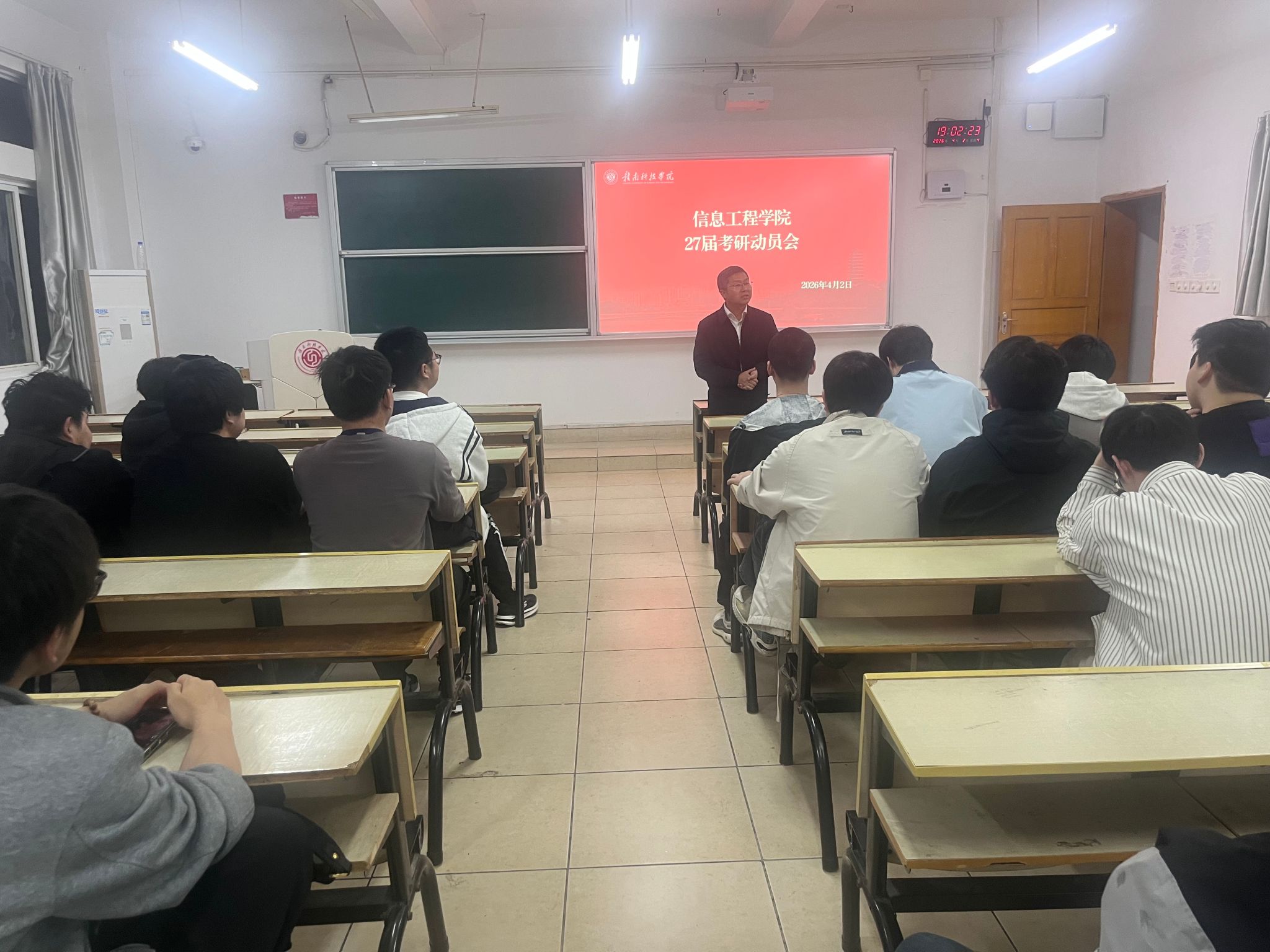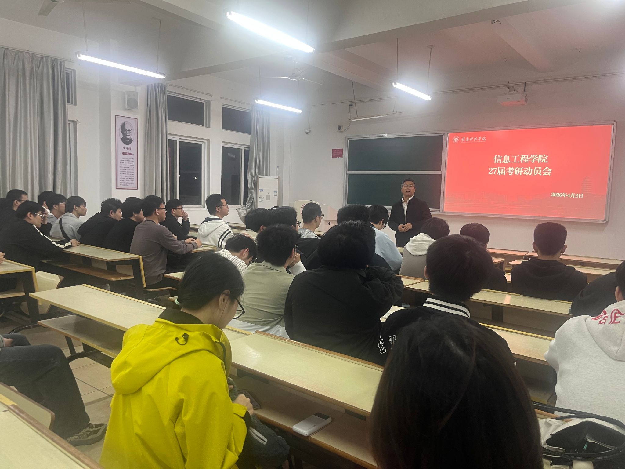 会上,魏炳辉老师结合当前考研形势与学院人才培养实际,从国家研究生教育发展趋势、专业就业前景以及个人成长路径等方面进行了深入分析。在具体指导环节,魏老师围绕“为什么考研”“如何准备考研”“如何合理规划时间”等关键问题进行了系统讲解。此外,会议还重点介绍了学院在考研服务方面的支持举措,包括经验分享、信息指导、个性化辅导等,进一步增强了同学们的备考信心。