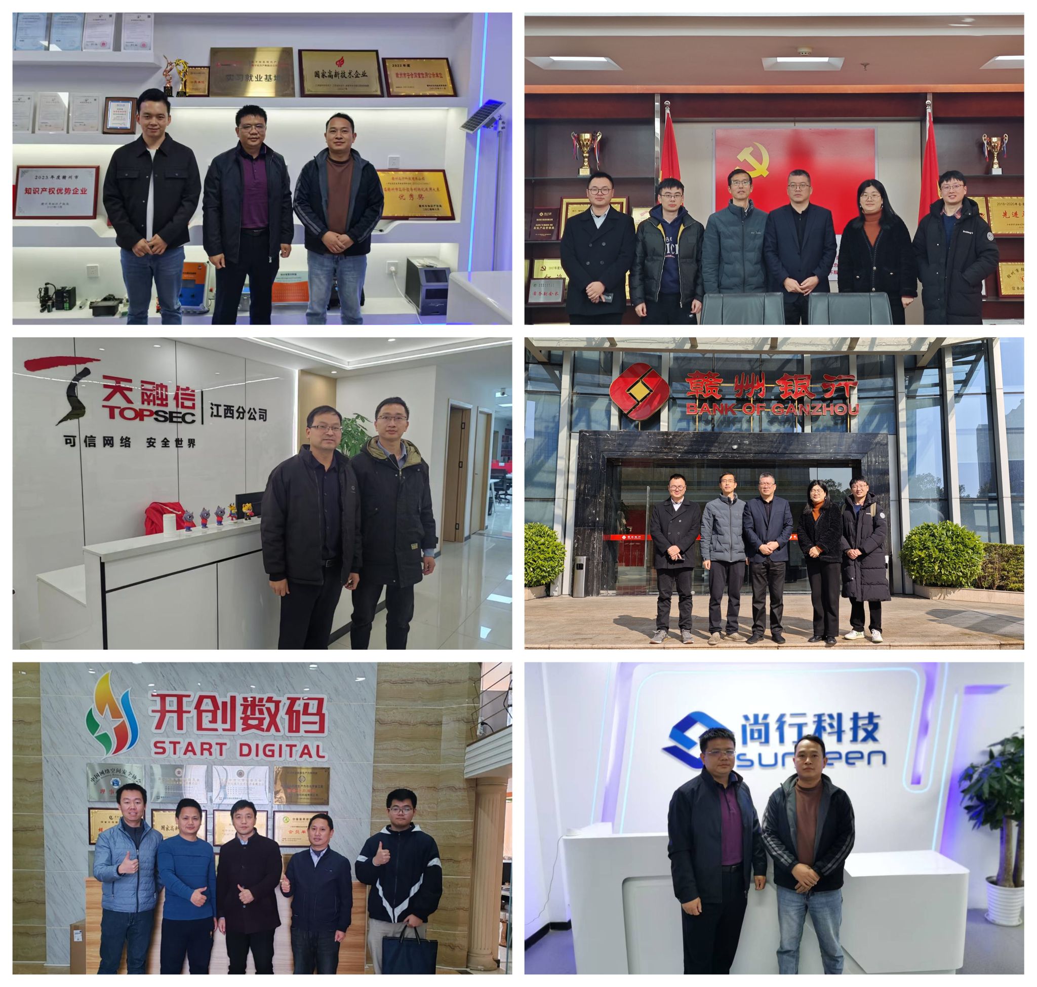 活动期间,学院多个小组相继走访了南京易视萃智科技有限公司、厦门触控未来科技有限公司、国投智能(厦门)信息股份有限公司、天融信科技集团、广州市安立发智能技术有限公司、武汉超星数图教育科技有限公司、北京天融信网络安全技术有限公司江西分公司、江西开创数码科技有限公司、江西数安数字技术有限公司、江西汇兴智能装备有限公司、江西省义诚项目管理有限公司、江西睿警信科技有限公司、深圳市信维通信股份有限公司、国投智能信息科技股份有限公司、广州尚行智能科技有限公司、中国移动通信集团江西有限公司赣州分公司、赣州银行、赣州银行科技部18家单位。